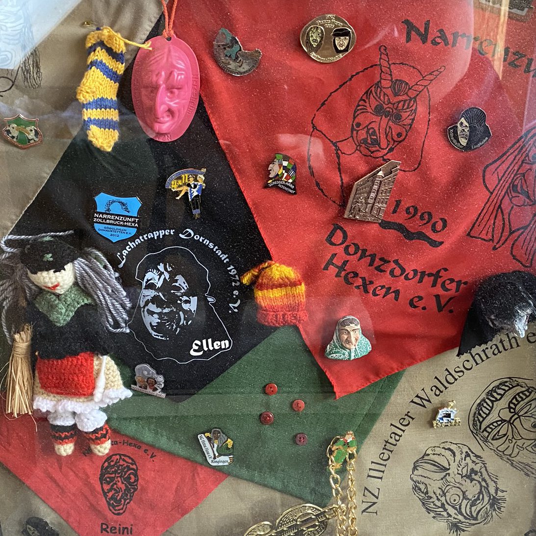 Im Gegensatz zu Unternehmen dienen bei Narrenzünften die Merchandise Artikel zur Grundausstattung eines jeden Hästrägers. Abgesehen von den verfügbaren Sachen der eigenen Zunft, tragen oder sammeln viele Hästräger auch Dinge von Freundschafts-Zünften.