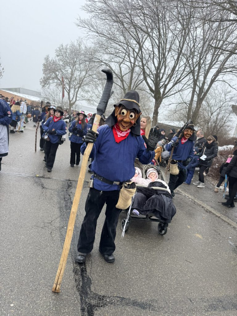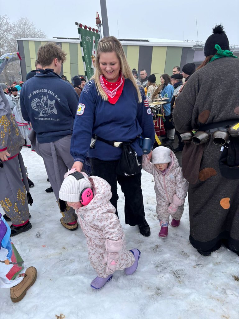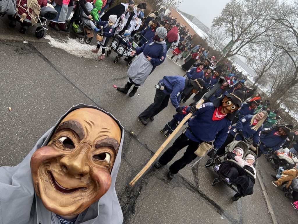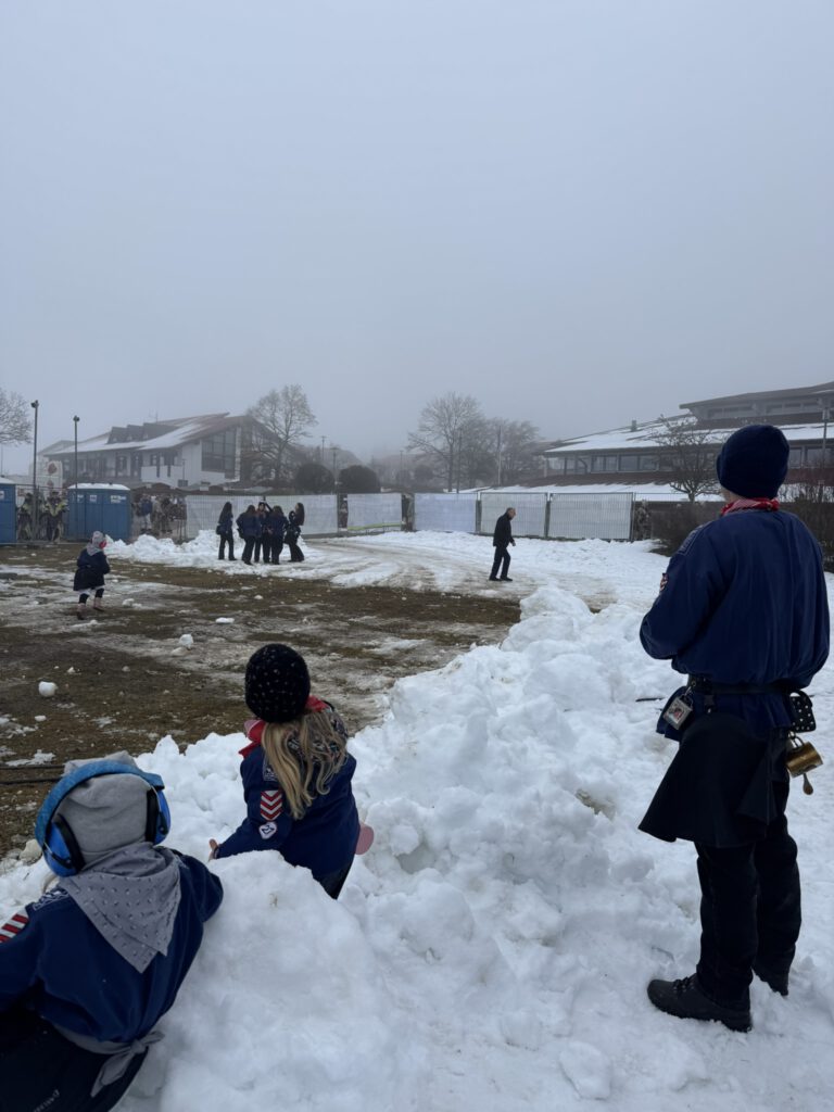 Der Start: Nachdem Roy und Eva beim Zunftmeisterempfang mit leckeren Linsen & Spätzle und vielen Glückwunschreden zum ersten Umzug verwöhnt wurden, gab es anschließend am Aufstellungsplatz kein Halten mehr – die erste Schneeballschlacht der Saison war eröffnet! ☃️