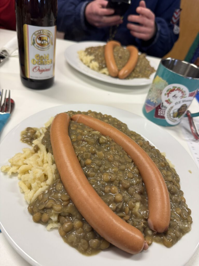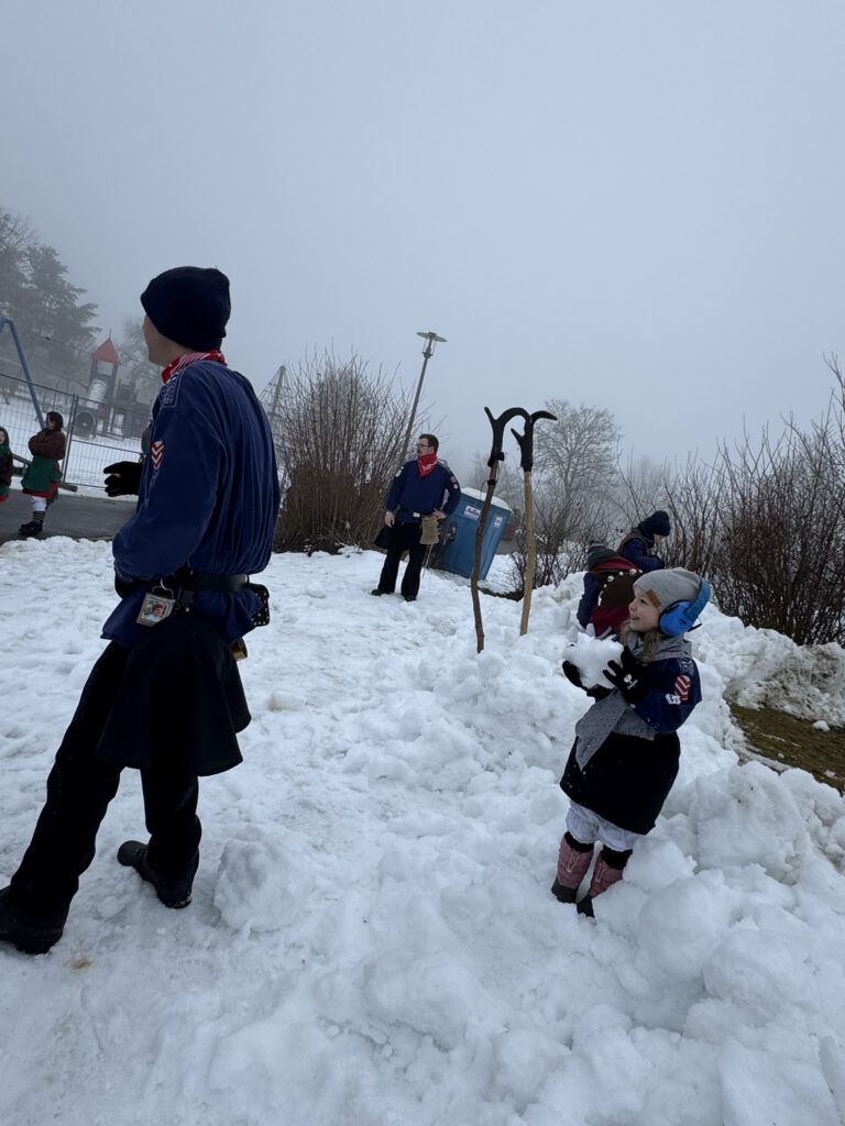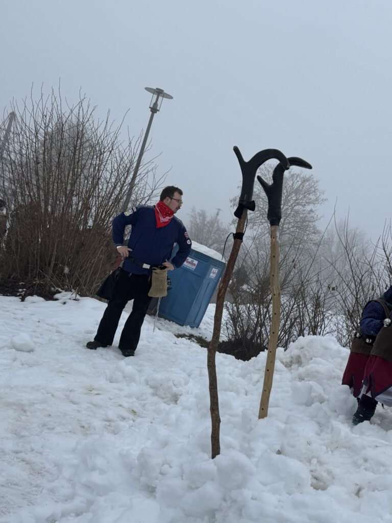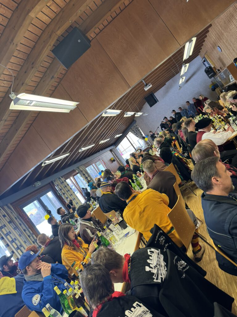 Der Start: Nachdem Roy und Eva beim Zunftmeisterempfang mit leckeren Linsen & Spätzle und vielen Glückwunschreden zum ersten Umzug verwöhnt wurden, gab es anschließend am Aufstellungsplatz kein Halten mehr – die erste Schneeballschlacht der Saison war eröffnet! ☃️